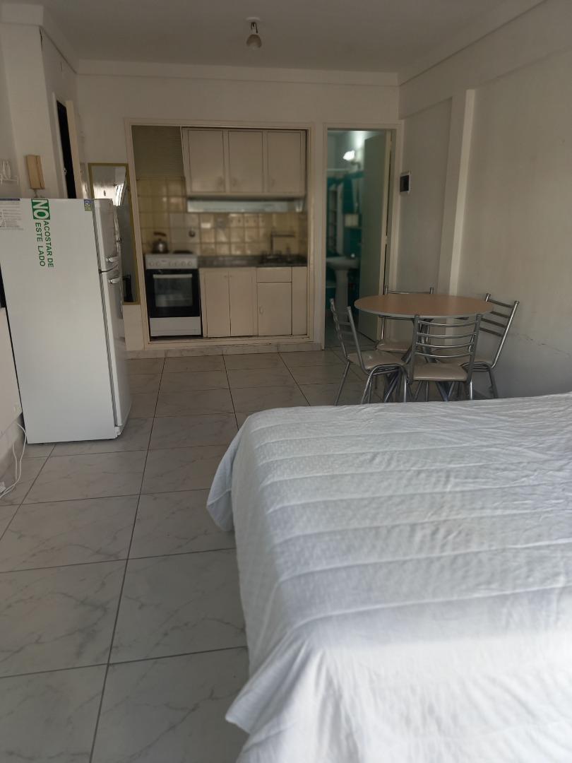 El departamento es un monoambiente con cocina integrada - posee pisos de porcelanato, gran placard , mesa con sillas , cama matrimonial , aire acondicionado , estufa placa , cocina con horno , heladera c/frezzer , baño completo. Capacidad máxima 2 personas