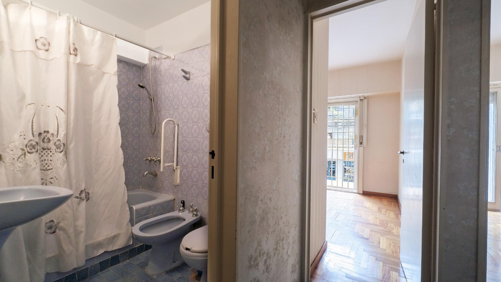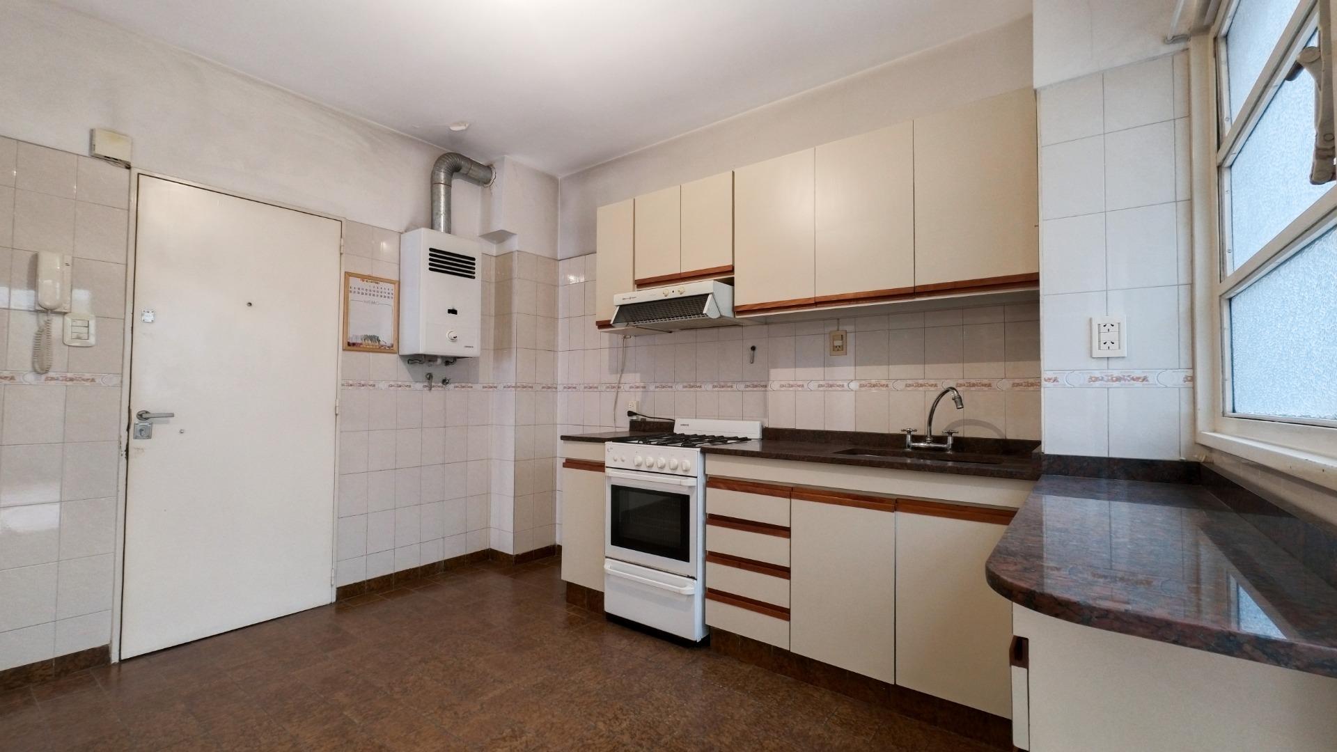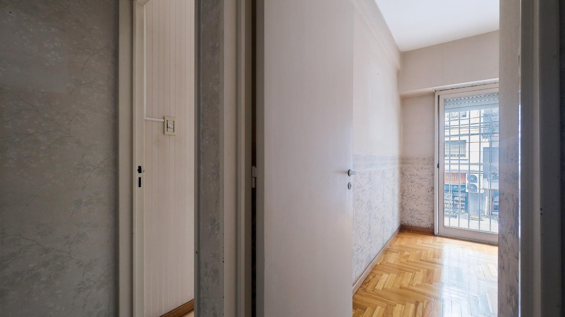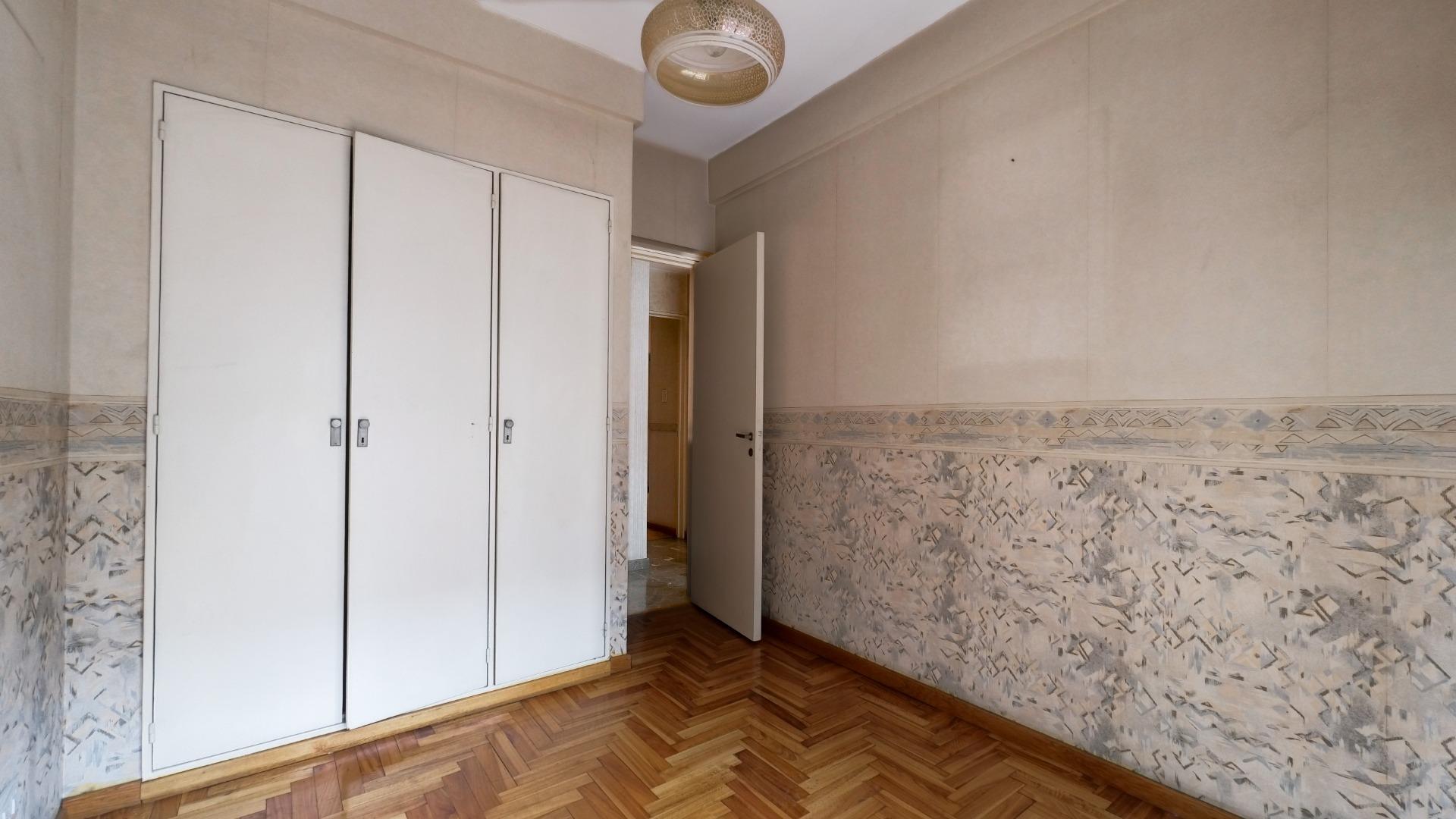 Se ingresa por el living tiene un excelente metraje con salida al balcón, posee toilette, distribuidor con acceso a os 3 dormitorios con pisos de parquet, 2 de ellos con salida al balcón y el otro con salida al patio que también le ingresa ventilación y luz natural , ese patio tiene también ingreso por la cocina comedor luego se encuentra la habitación de servicio con ventana al patio y baño de servicio o cuarto de lavadero. La cocina posee calefón y muebles bajo mesada y alacenas en L . Si tienen un hijo adolescente tiene su lugar independiente del resto de la casa . Perfecto para una familia numerosa.
